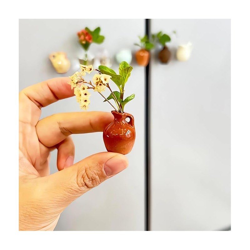 - Vase Magnets for Fridge: You get mini ceramic vase magnets in different shapes and colors—The set even comes with bright, colorful fake flowers! Just pop the small flowers or tiny plants into the mini vase magnets and stick them on your fridge door for fun, adding a splash of color to your kitchen. This cute vase also serves as a playful accent for whiteboards or miniature scenes