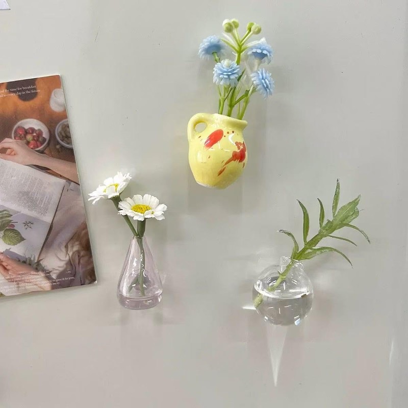 - Mini Vase Magnets Set: Features charming mini household items like floral glaze bottles, milk pots, and wine jugs, crafted with vivid colors and lifelike details to brighten fridges, lockers, or office spaces