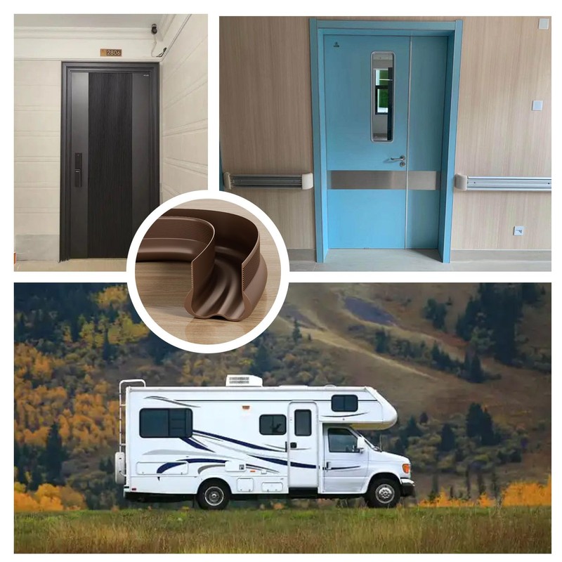 2. Esta junta inferior de puerta adopta un nuevo diseño de fondo corrugado, que reduce en gran medida el área de contacto con el suelo, baja fricción, sin ruido al abrir y cerrar la puerta, sin dañar el suelo, proporcionándole un ambiente tranquilo y confortable. Disfrute de un ambiente tranquilo y familiar, alejado del bullicio de las calles o del sonido de la televisión de los vecinos, aportando relax y tranquilidad a su familia.