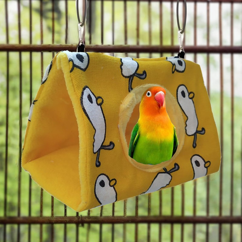 - 【Cama Colgante de Pájaro de Invierno】La hamaca jaula es de diseño de estilo carpa triangular con aberturas en ambos lados para acomodar mejor a las aves con hermosas colas largas. El diseño de la cueva no solo facilita que las aves se pongan de pie, sino que también permite una mejor observación e interacción con su mascota. La carpa para dormir suave y confortable puede aliviar el estrés de las aves y proporcionarles una sensación de seguridad.