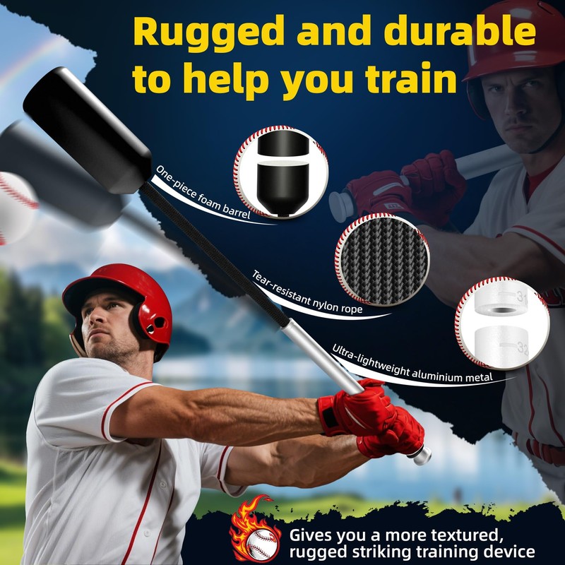 - Crafted from premium materials: Our Rope Baseball Batting Bat features an aluminum sandblasted handle that replicates the authentic feel of a real baseball bat. The connecting rope is made of nylon, keeping the rope baseball batting bat exceptionally lightweight while delivering outstanding quality