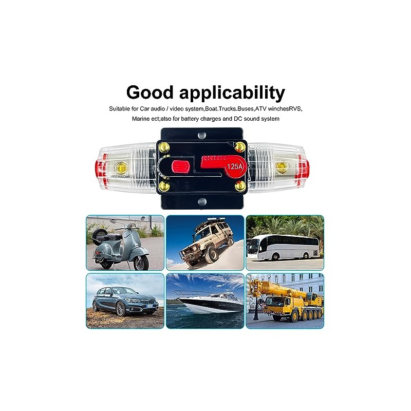 - Wide Application: Suitable for car audio/video system, boat, trucks, buses, RV's, ATV winches, marine and DC sound amplifier system overload protection.