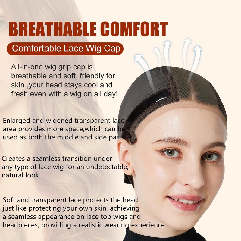 - Perfect Design:2 in 1 grip band & non slip wig grip cap for lace wigs.The wig cap features a lace design in the hairline and part,with a widened lace structure that creates a natural seamless and undetectable transition.