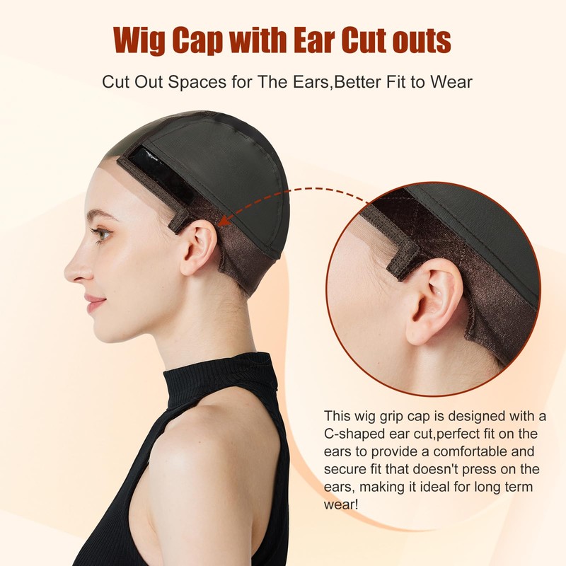 - Comfortable Wig Grip Cap:This wig grip cap is designed with a C-shaped ear cut,cut out spaces for the ears perfect fit on the ears to provide a comfortable and secure fit that doesn't press on the ears,making it ideal for long term wear!