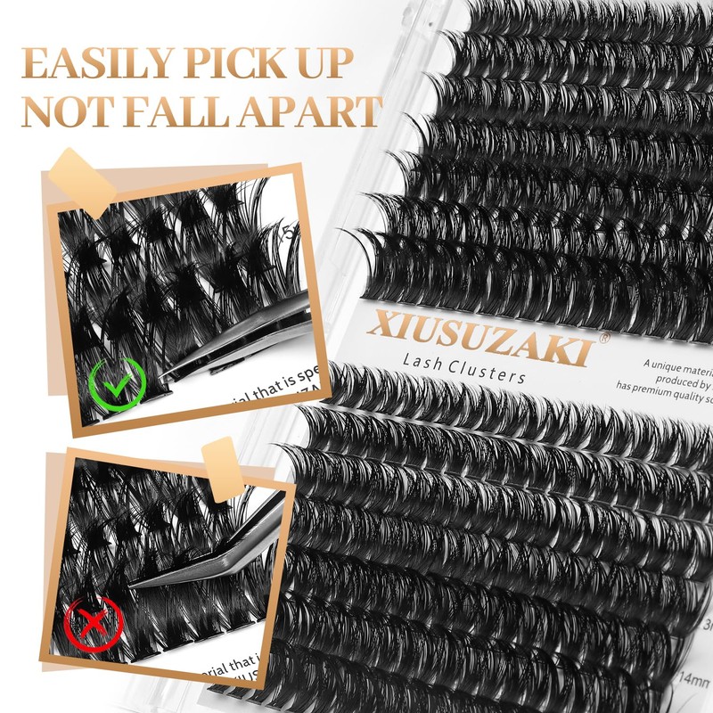 - Thin Band and Soft Lashes: XIUSUZAKI cluster lashes have a 0.1mm super thin band and make a perfect makeup for your natural lashes, and our individual lashes are soft and will not sting your eyes.
