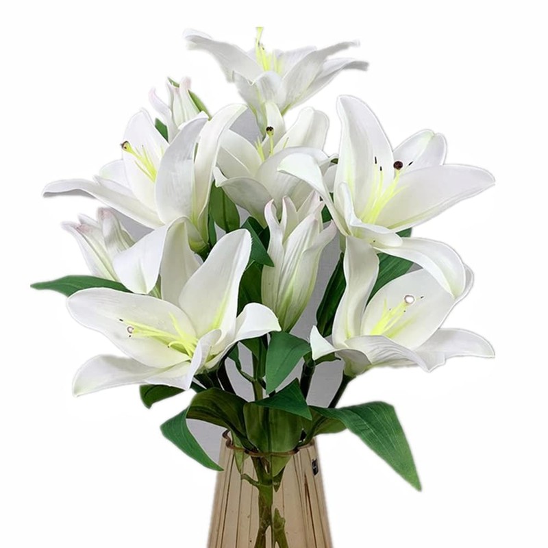 - ARTIFICIAL LILY: These artificial lily flowers bring you the feeling of fresh and elegant, they are beautiful and realistic. Brighten your home with this artificial lily. They can work harmoniously with any decor and style.