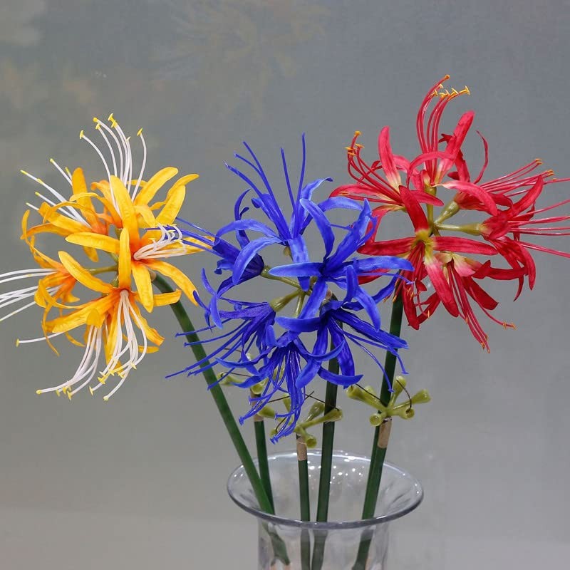 XIZHI 5 Stems Artificial Spider Lily Flowers 23.6 Inches Lycoris Bulbs Spider Lilies Artificial Flowers with Long Stem Real Touch for Photography Hotel Garden Decoration (Blue)