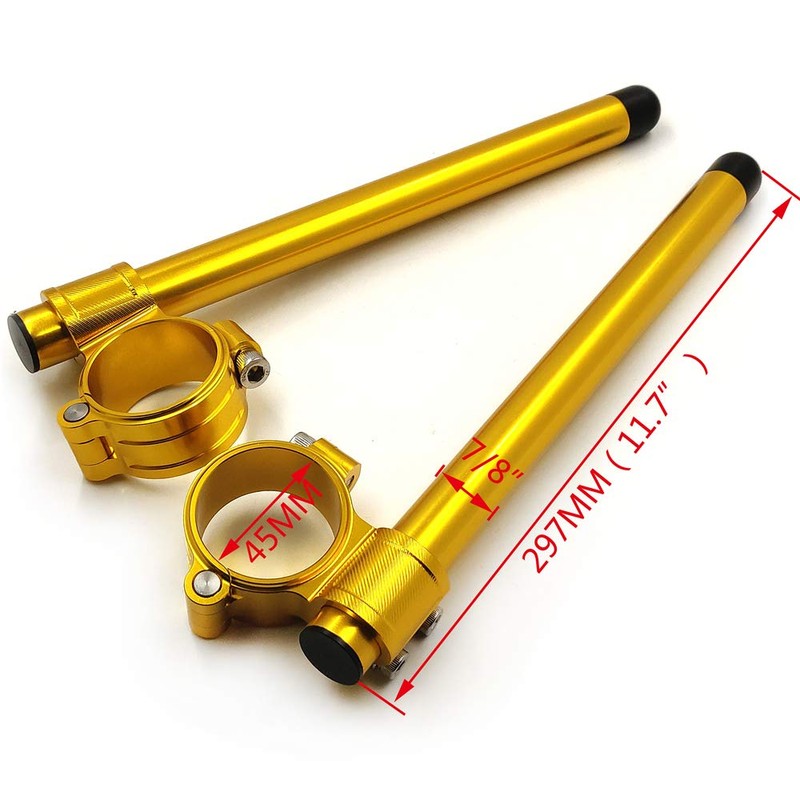XKMT- Riser Pair Handle Bar 45mm Tube Clip-ons Handlebars Clamp Gold Compatible with Cafe Racer H-D