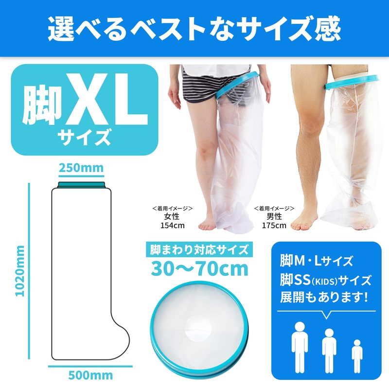 【理学療法士監修】 ギプスカバー 包帯 シャワー 入浴 簡単着用 【毎日使える】 (大人の足用XLサイズ(102cm))