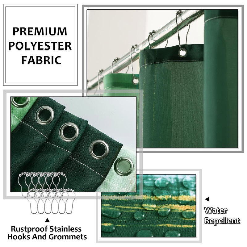 - Shower Curtain Set: The shower curtain made from 100% polyester fabric material, has good waterproof and dries quickly, ensuring long-term use. Adopts high-definition pattern printing technology, rich in colors and vivid, Not easy to fade.