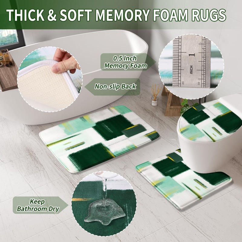 - Non-slip Bathroom Rugs: Bathroom rug set is made of thick memory foam, which is comfortable and quite textured. Anti-slip bottom is made of high quality TPR material. This anti-skid rubber backing helps keeping the bathroom mat firmly in place. Please make sure to place rugs on dry smooth floor only.