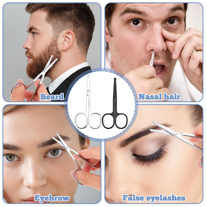 1. Eyebrow scissors with a round tip design, safer protection especially for facial, nose hair grooming. Cutting edges with rounded and curved tips offer accuracy and can help trim small parts.
