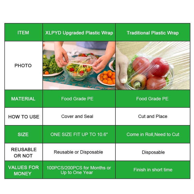 XLPYD - Cubiertas elásticas reutilizables para alimentos, superfáciles de usar, bolsas de mantenimiento fresco, 100 unidades, plástico elástico para alimentos, envoltura de plástico, envoltura de adherencia, envoltura de saran, elástico y fresco, fundas