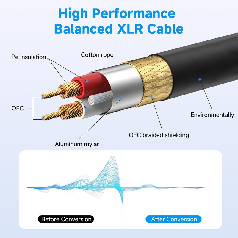 - High performance Balanced XLR Cable: Our XLR microphone cable is made with Oxygen free copper,high-quality 3 Pin XLR connectors and dual shielded design that ensure high quality and high pure signal transmission