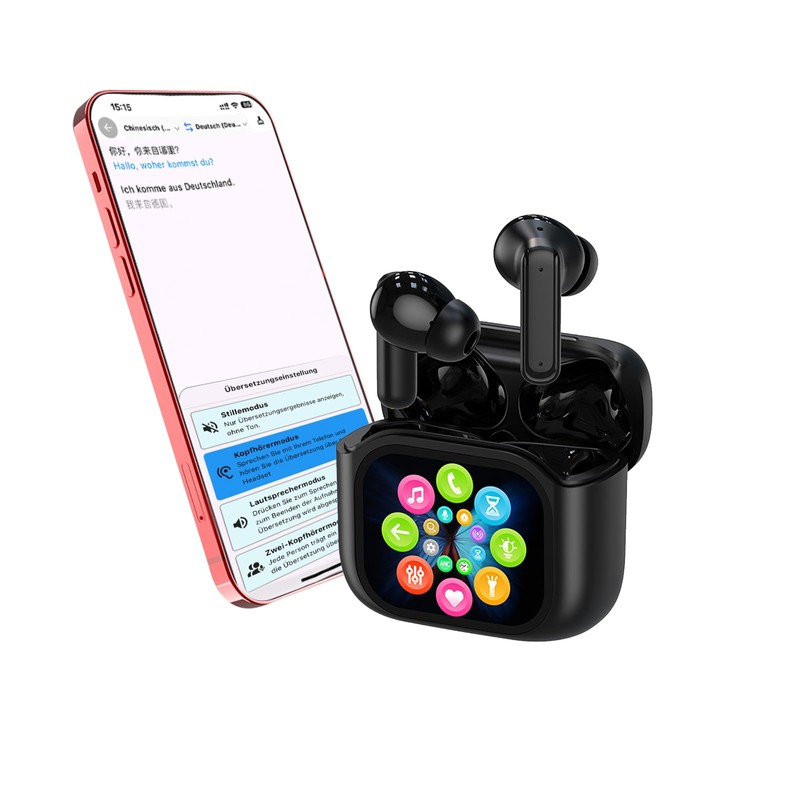 1.AI Translation in Real Time: Our smart earbuds can provide real-time translations in 150 languages to meet your different scenarios such as travel, study, work, business meetings, etc., ensuring that every communication runs smoothly and efficiently.
