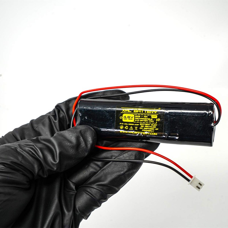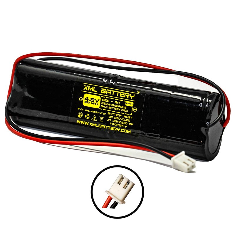 (10 Pack) This rechargeable nickel cadmium battery is specifically designed for Emergency and Exit Lights Product Features: Voltage: 4.8 Volt Capacity: 650 mAh Battery Chemistry: Ni-CD Part Number: XML-48650-JC2P Emergency Light Replacement Battery This battery works for the following models: XML-48650-JC2P Battery XML48650JC2P NIC0991 4AA-800-18-8WL 4AA800188WL 4AA-800-18-8WL 4AA800188WL 859-0120859 8590120859 D-AA650B DAA650B D-AA650Bx4 DAA650Bx4 0120859 Ni-CD AA 400mAh 4.8V OSA145 OSA-145 Custom-145-18 Custom145-18 Custom14518 Custom-145-10 Custom145-10 Custom14510 EJW-NI-CAD All Fit E1021R 4.8v 650mah Ni-CD AA 4.8v 800mah Ni-CD AA BYD D-AA650B-4 DAA650B-4 DAA650B4 12-859 12859 EBE-145-18 EBE14518 18623 Battery EJW-NICAD All Fit EJWNICAD 18107 Battery 4.8v 650mah 4.8v 650mah Home 4.8v 650mah Wal 4.8v 650mah Plus