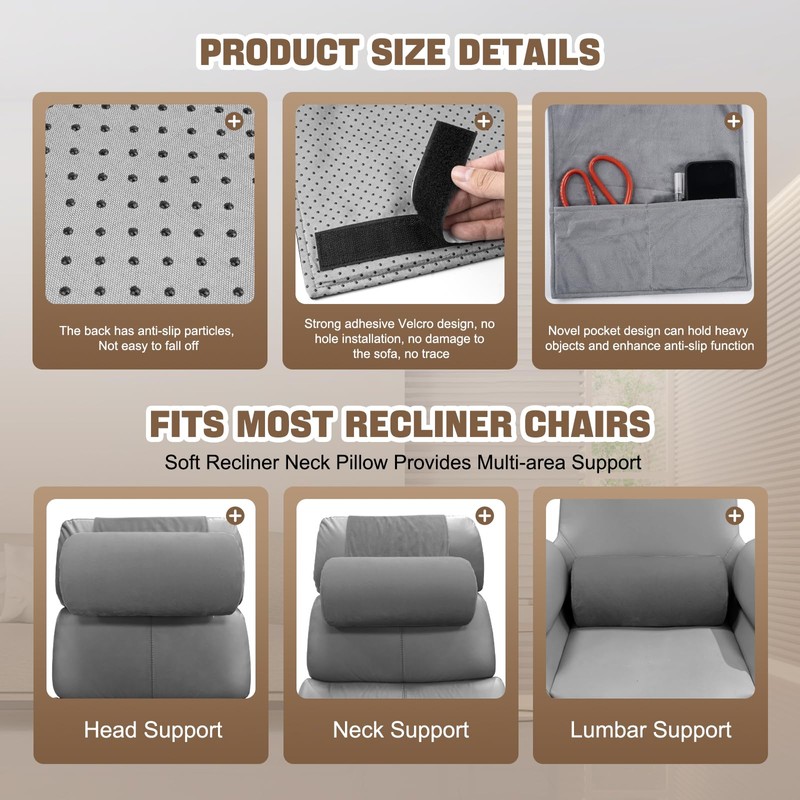 - Easy To Install and Clean: Our recliner head pillow features a removable memory foam liner with excellent elasticity and support, and the soft velvet cover is removable and washable, allowing you to enjoy easy maintenance. In addition, the extended non-slip bottom design makes it less likely to slide, enhances fixation, and the convenient pocket allows you to carry small items and keep them within reach.