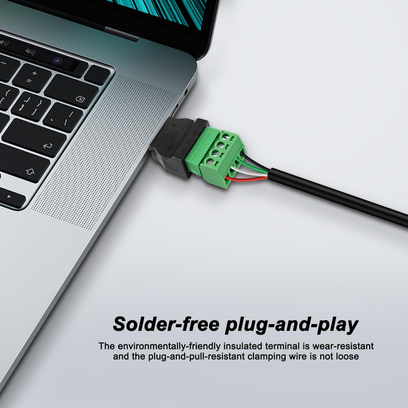 1. Convert the USB signal into a 4-pin green terminal without welding.