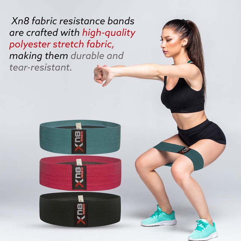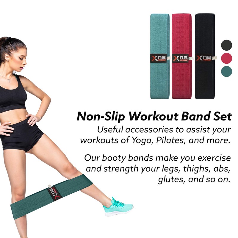 XN8 Fabric Resistance Bands Exercise Loops Booty Non-Slip Workout Band Set for Hips Glutes Legs Butt-Fitness-Yoga-Pilates (Blue, L)