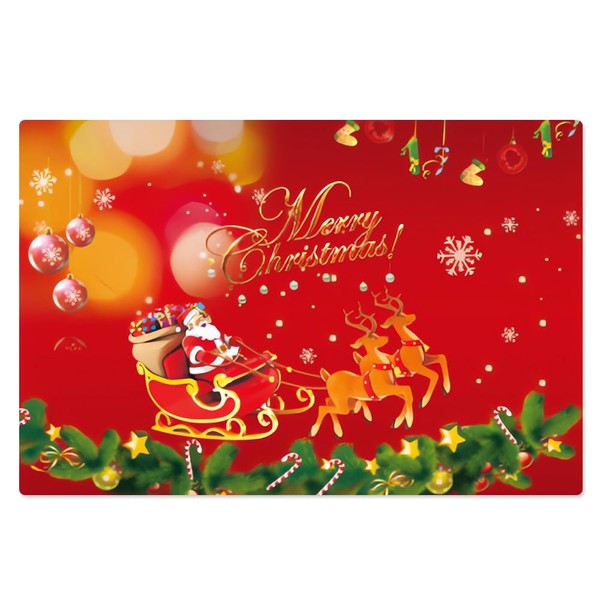 - Christmas rug decoration: the size of the Christmas doormat is 40 x 60 cm. Beautiful colors and cute Santa driving a reindeer sleigh filled with gifts. Printed carpet, can be used in most households. Children will definitely like it.