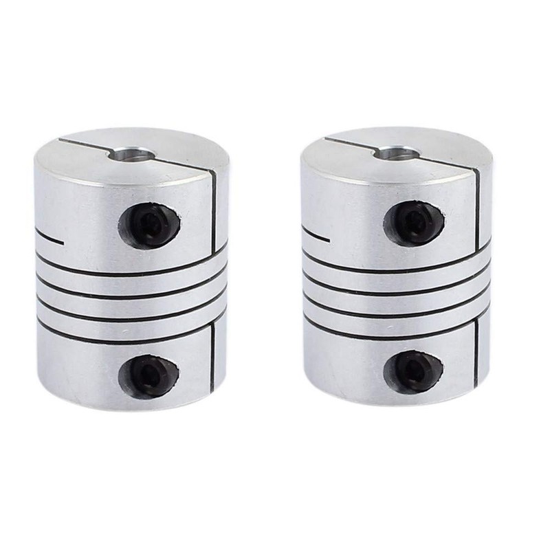 Description: 6mm to 6.35mm shaft usage diameter, 30mm length, 25mm diameter, set screw type, beam coupling. Zero backlash. One-piece metallic spring coupling. For little torque shaft connect. Absorption of parallel, angular misalignments and shaft end-play by spring action. Widely used in drive systems for encoders, instrumentation,lead screws, small pumps, feed rollers and anywhere light to medium duty, torsionally flexible coupling is required. Specification: Feature: Set screw (coiling clamping) Size: 30x25mm/ 1.18x0.98inch( L*D) Material: Aluminum alloy Main Color: Silver tone Weight: 70g Package Content: 2 x Shaft coupling