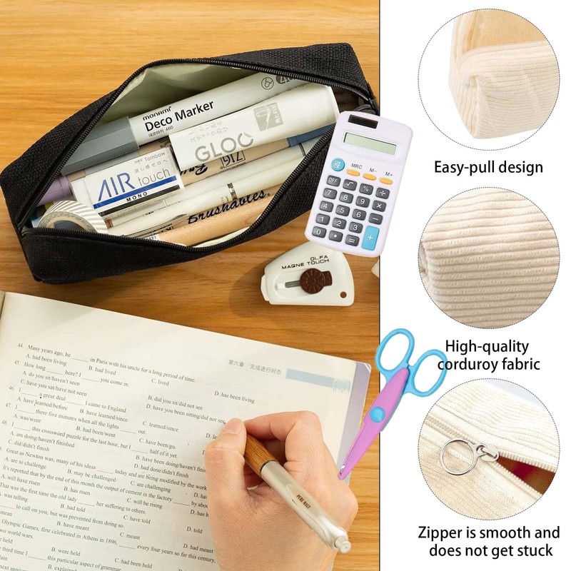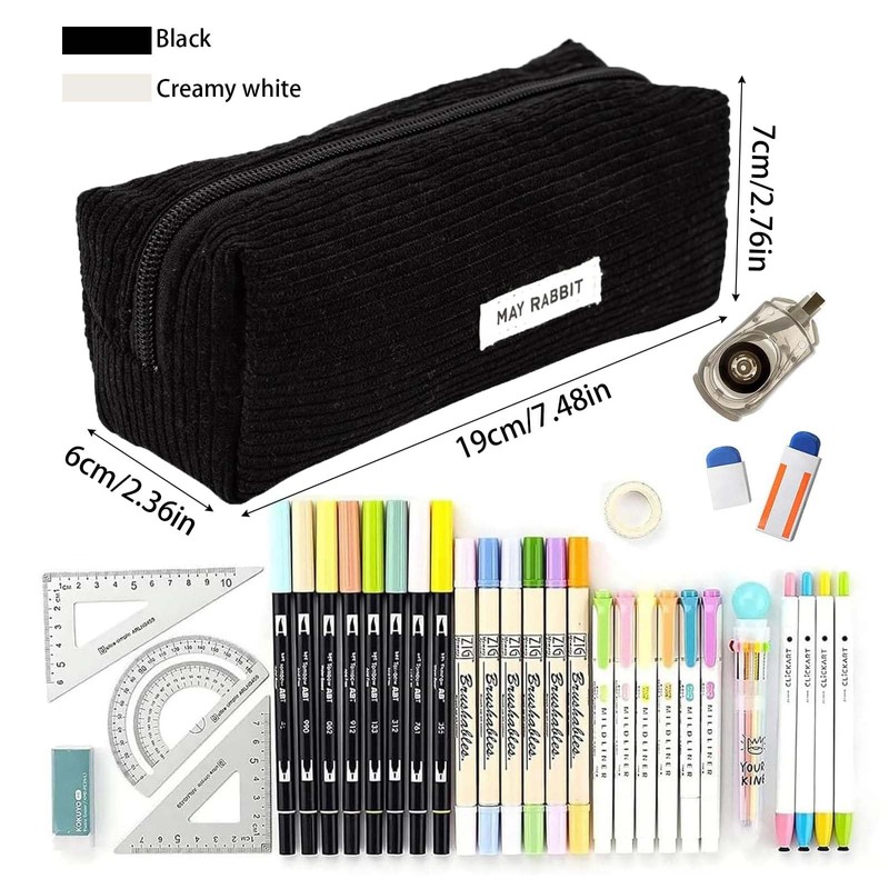 - Multiple color options: you will get 2 large pencil cases, the size is 19 x 7 x 6 cm, there are 3 combinations to choose from: black + cream, pink + grey, dark green + ginger. This pencil case weighs only 50 grams and can be easily stored in your school bag or backpack. The pencil case is an ideal companion for everyday school or on the go