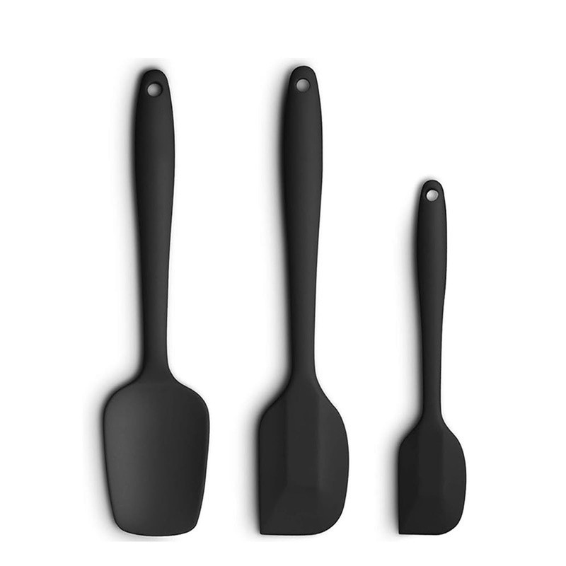 xolear 3 Stück Silikon Spatel Set, Silikon Küchenhelfer, Hitzebeständig bis 220 °C, BPA Frei Teigschaber, Nahtloses Einteiliges Design, Antihaft Silikonspatel für Kochen, Backen und Mischen (Schwarz)