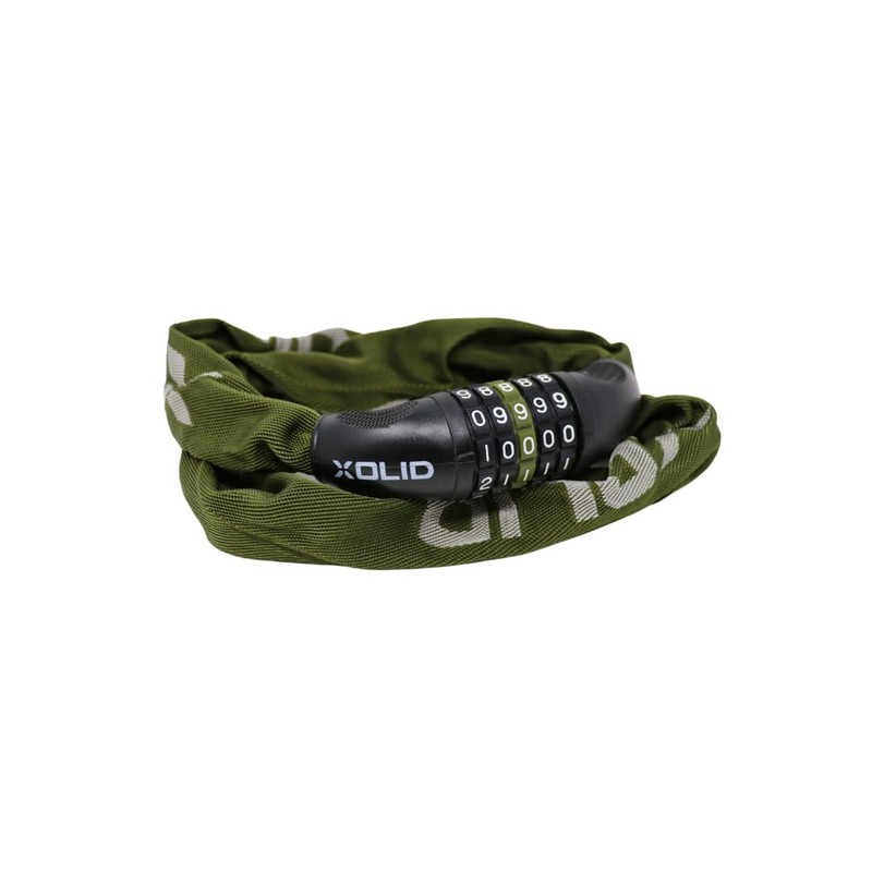 Xolid Chain Combination Lock 900 x 6 mm Army Green - Safe, Robust, Weatherproof, Flexible, No Key, Ideal for Bicycle, E-Bike, Scooter, Anti-Theft Protection, 4 Digit Combination Code, Suitable for