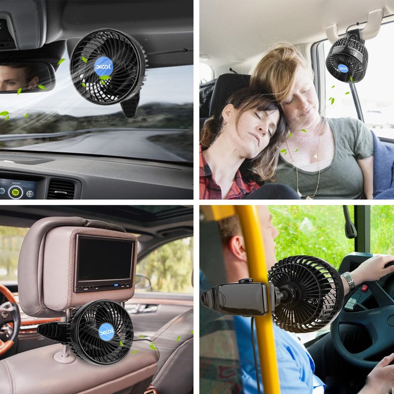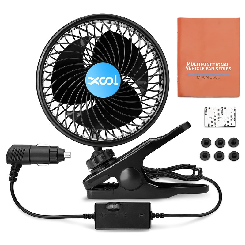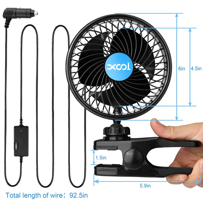XOOL XOOL 12V 6' Car Fan, Clip Fan 360 Degree Rotatable Car Fan Cooling Air Fan with Stepless Speed Regulation & Cigarette Lighter Plug for SUV, RV, Vehicles