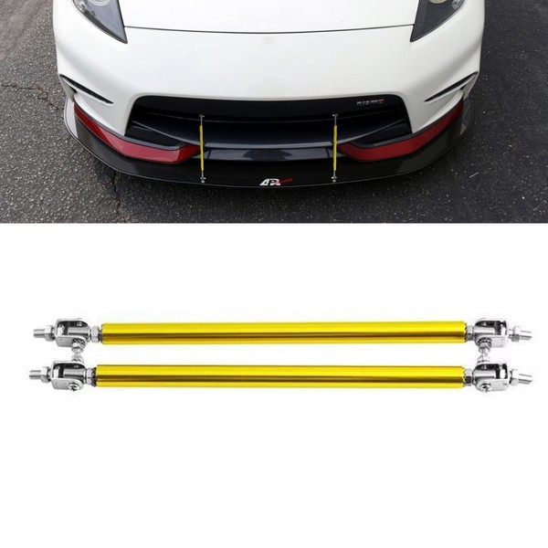 Xotic Tech 2pc Adjustable 6"-9" Front Bumper Lip Splitter Diffuser Strut Rod Tie Bars Compatible with Most Vehicles [Gold]