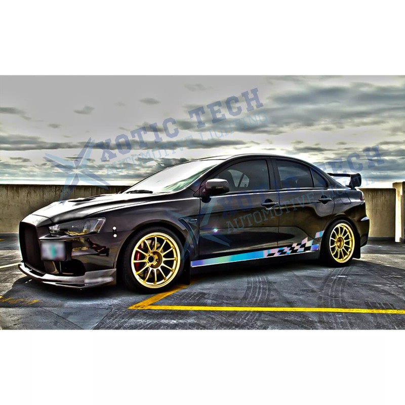 Xotic Tech NEO Colorful Racing Flag Checkered Side Skirt Stripe Decal Stickers Universal