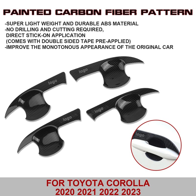 Xotic Tech Set(4Pcs) Carbon Fiber Texture Exterior Door Handle Bowl Cover Trim Panel Frame Compatible with Toyota Corolla 2020-2024