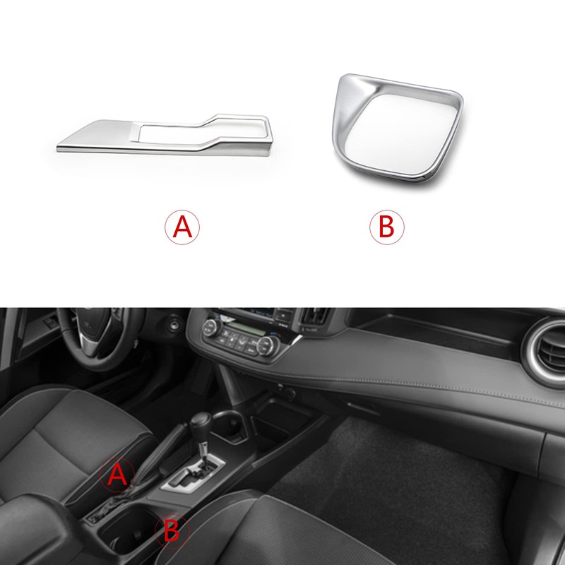 Xotic Tech Set Matte Silver Interior Water Cup Holder Handbrake Panel Frame Accessories Cover Trim Combo Kit, Compatible with Toyota Rav4 2013-2018