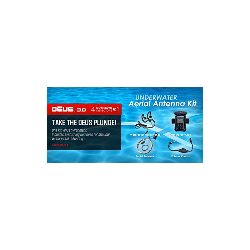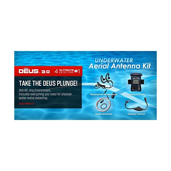 XP Deus Certified Underwater Water Kit with 8 Foot Aerial Antenna, Waterproof Case, Waterproof Headphones, and Volume Control.