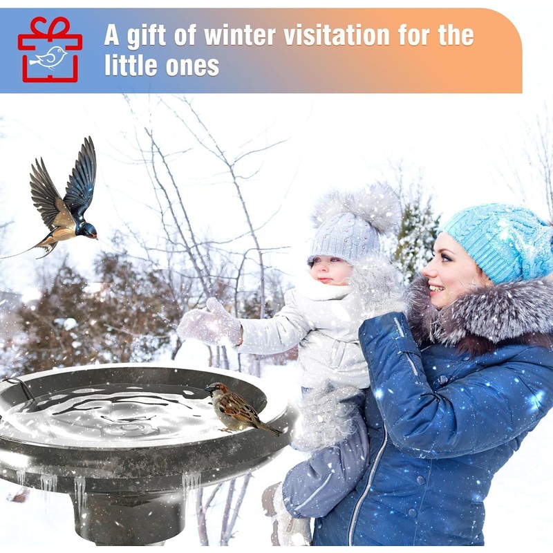 - 【Animal Friendly and Safe】Bird bath de-icing heater with integated stripped design and high-density aluminum shell for double protection. The new environmentally friendly waterproof paint wrapped de-icer can be waterproof and rustproof, the high quality wire cover material allows birds and squirrels to peck or bite the wires without causing damage or injury. Ensures the safety of curious birds. Allows birds to play in warm water during the winter months. Easy to clean, won't calcify, rust, exte