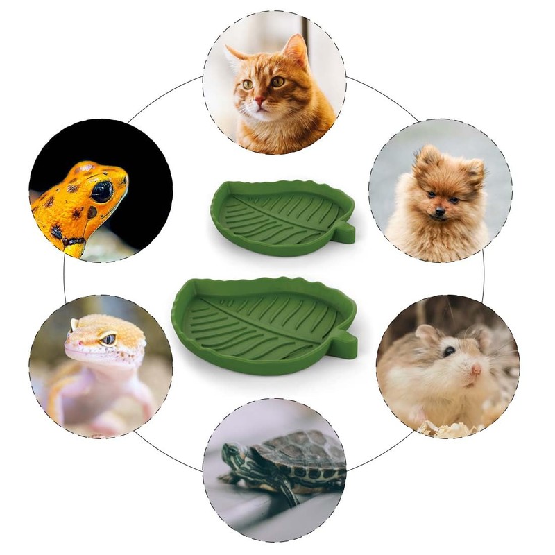 XPEX 2 Pack Leaf Feeding Bowls, Reptile Water Bowls, Feeding Bowls, Feeding Bowls, Flat Drinking Bowls, Water Bowls for Any Reptile Feeding Bowl