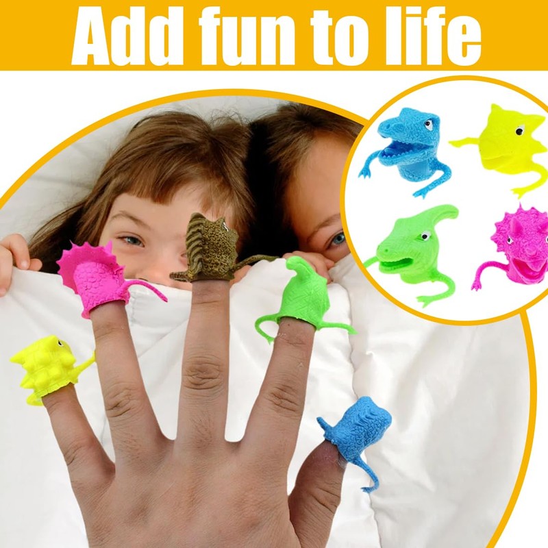 XPEX Pack of 10 Dinosaur Mini Hands Finger Puppets, Finger Puppets for Children, Hands Finger Puppet Set, Rubber Finger Puppets, Prank Toy for Pets, Cats, Children, Games Party