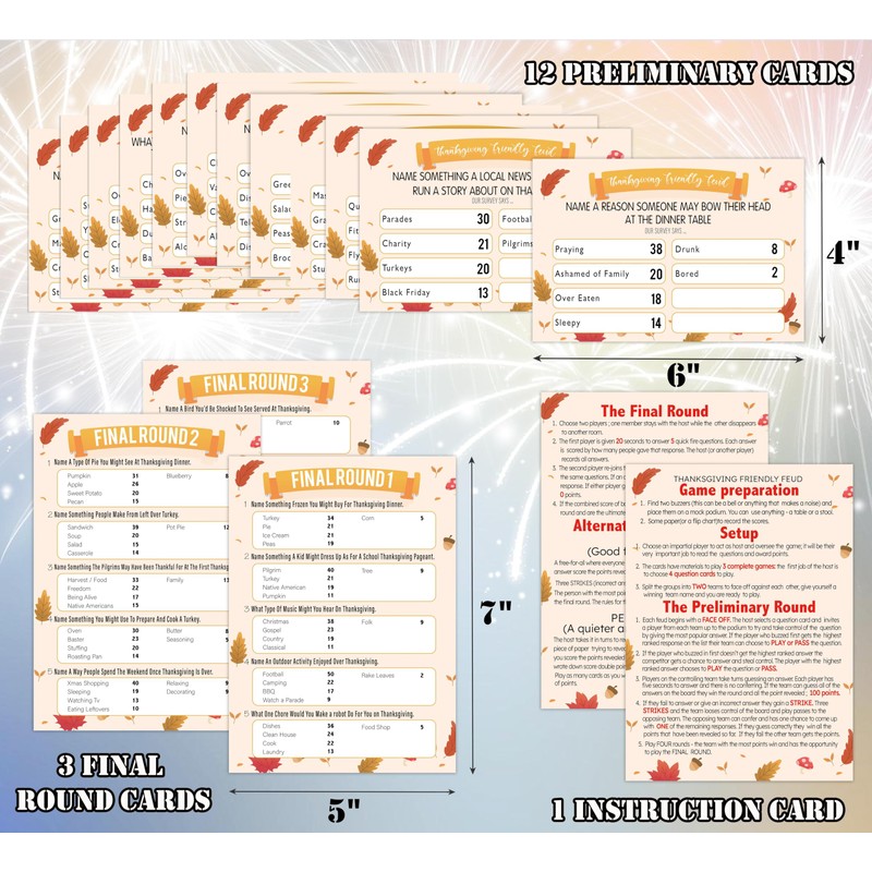 XQF Thanksgiving Friendly Feud Quiz, Thanksgiving Party Games, Family Feud Games, Ice Breaker Game for Adults, Fall Party Supplies, Includes 12 Preliminary Cards and 3 Final Round Cards, ZC02
