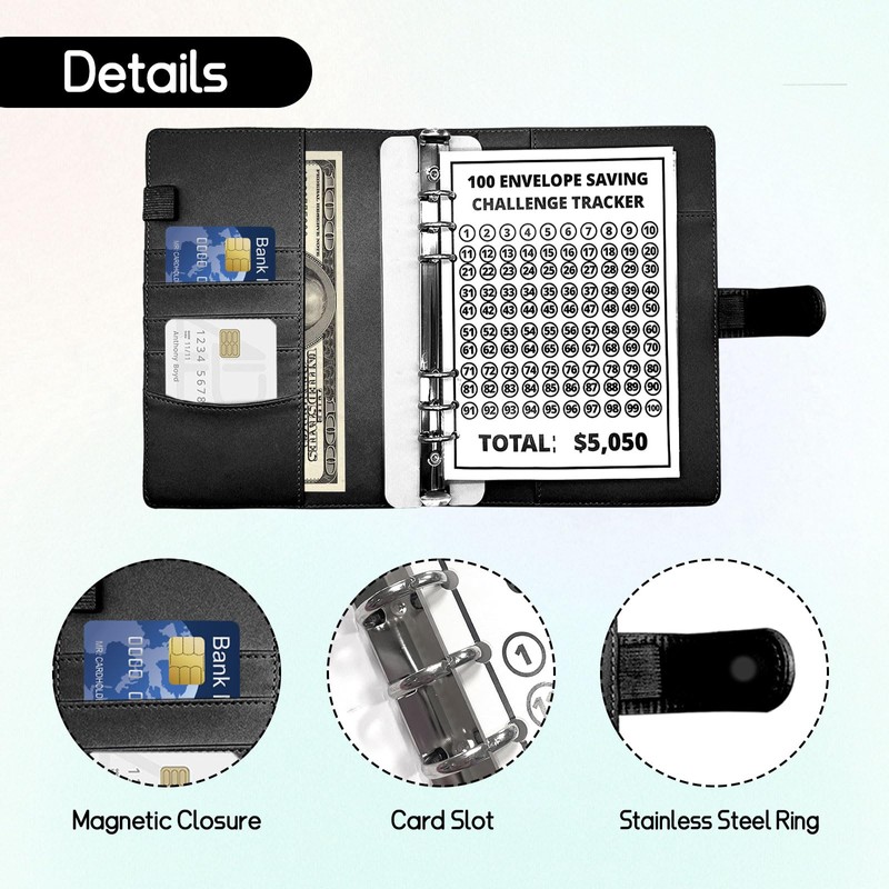 - 【CONVENIENT & PORTABLE】 - Check your savings goals anywhere with our compact and easy to carry wallet. This savings challenge binder is designed to blend seamlessly into your daily life and be your loyal companion on the path to financial freedom.