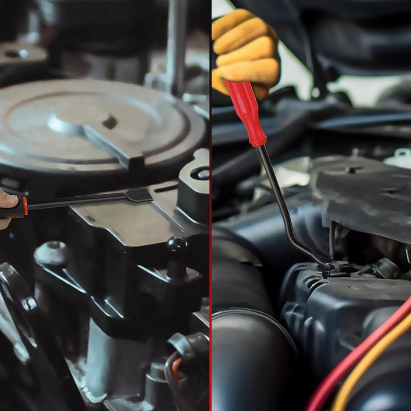- 9 in 1 Precision hook kit for repairing car,radiator hose,separating wires,removing small fuses,retrieving and loose parts.Gaskets, springs,moldings,oil seals,faucet o rings washers,hoses,clips,clamps, cotter pins seal remover and installation tool