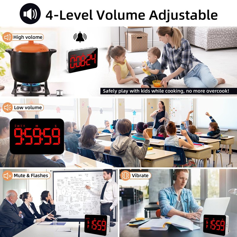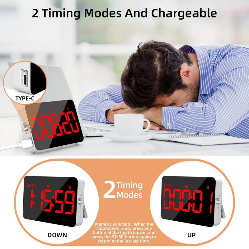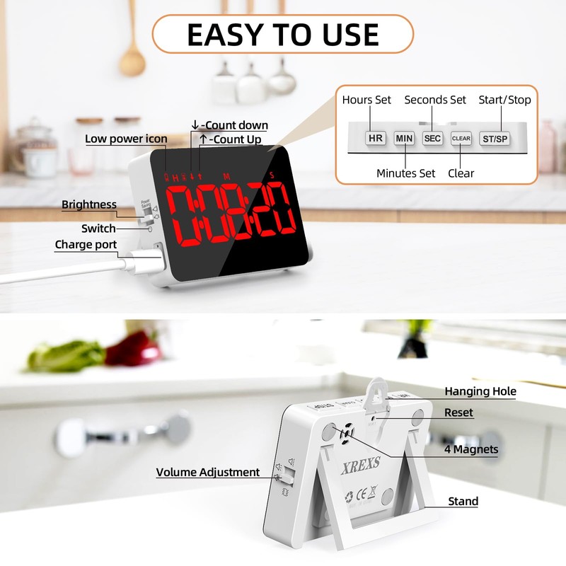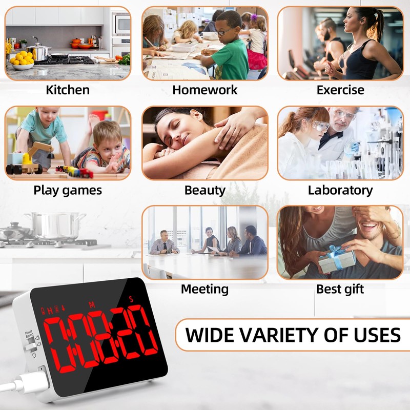 - Rechargeable digital kitchen timer with LED display: with super clear LED display and rechargeable function. The time range is up to 9 hours, 59 minutes and 59 seconds. When the battery power of the kitchen timer is low, a low battery symbol appears on the screen. Please charge it in time (charging cable included).