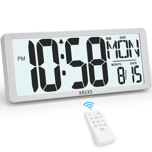 XREXS Large Digital Wall Clock with Backlight, 14.17 Inch Large Display Wall ...