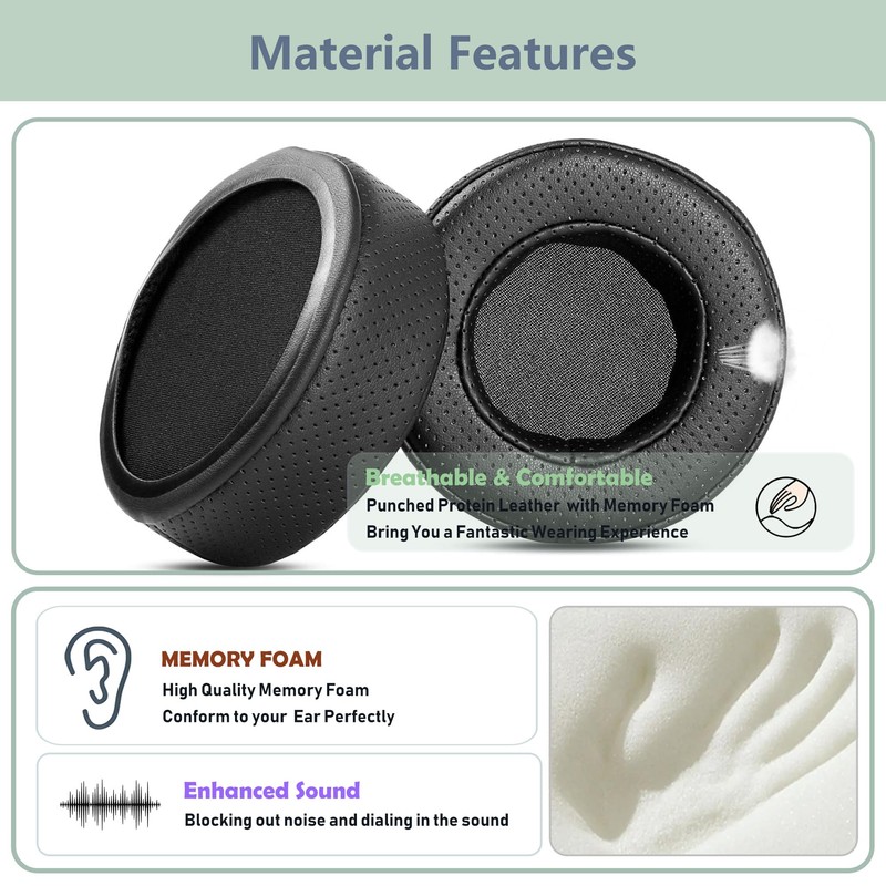 - 🎧Soft and Breathable Ear Pads Cushion:made of soft & punched protein leather and high quality memory foam in our professional factory.