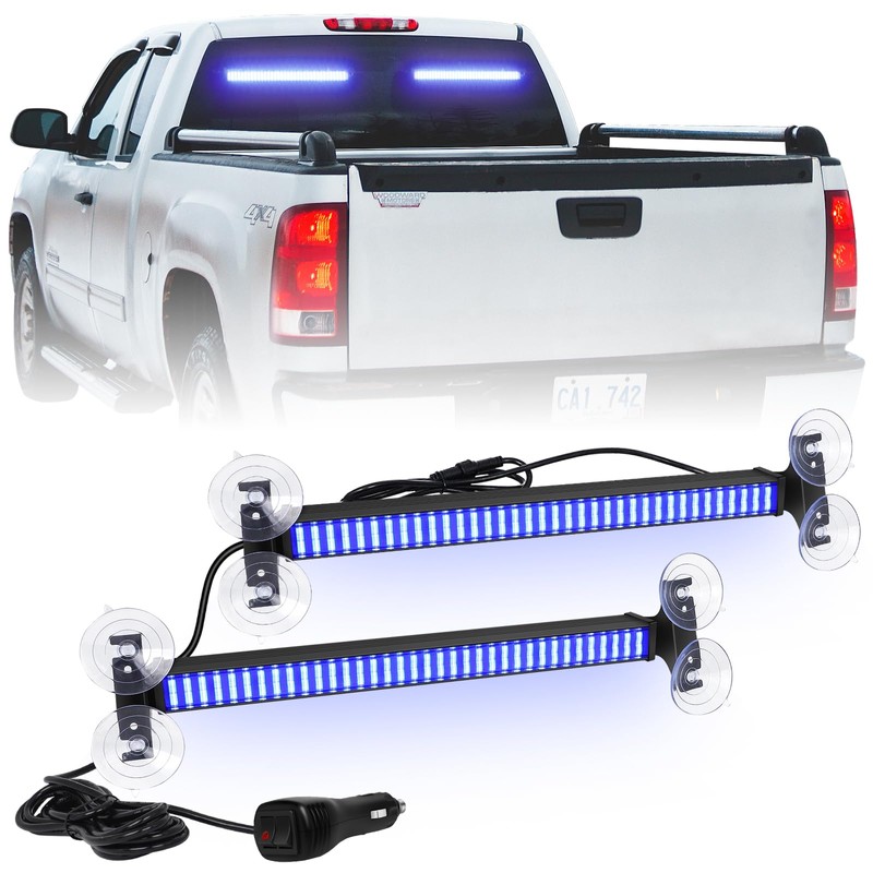 - UPGRADED - This windshield traffic advisor strobe light bar has a total of 144 high-intensity Led chips, using floodlight PC lens, which can maximize the light output. Visible in day and night and lifespan over 50,000 hours. Innovative rotatable mounting bracket, which can be installed on any horizontal, inclined or vertical surface.
