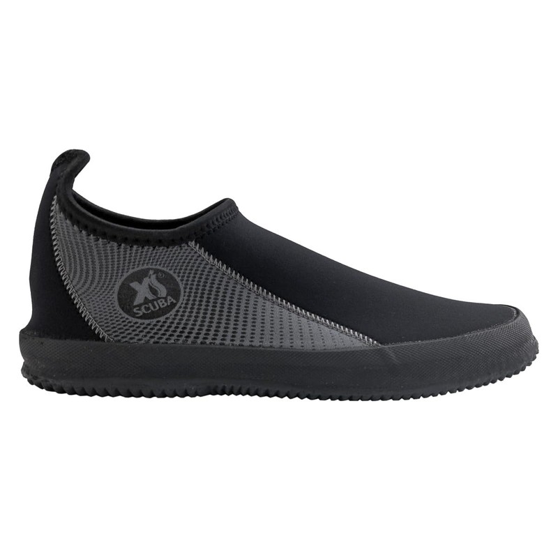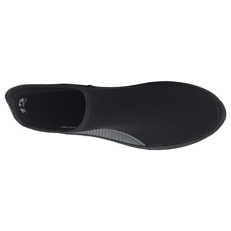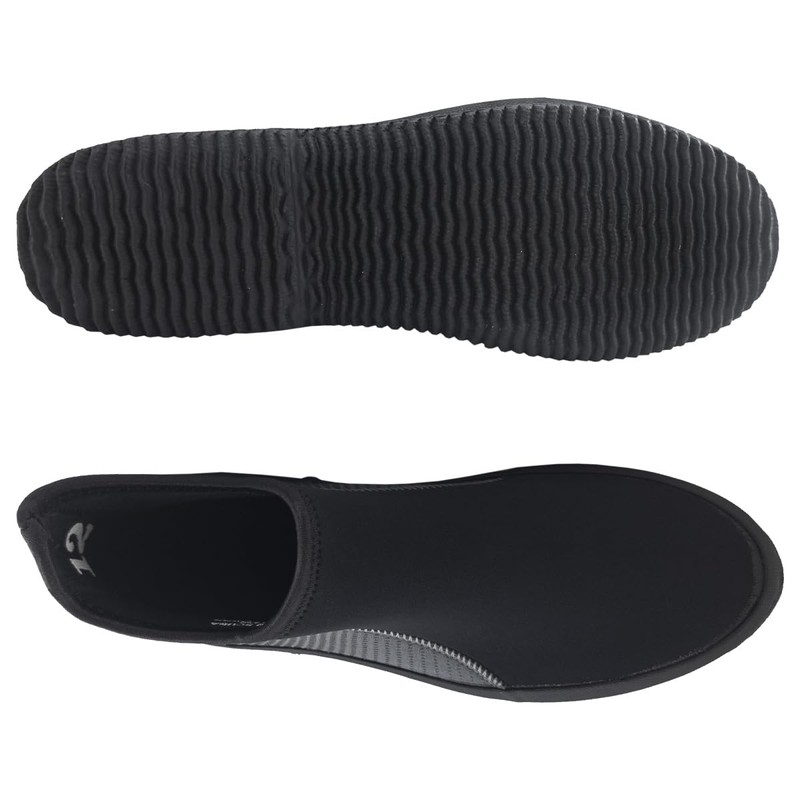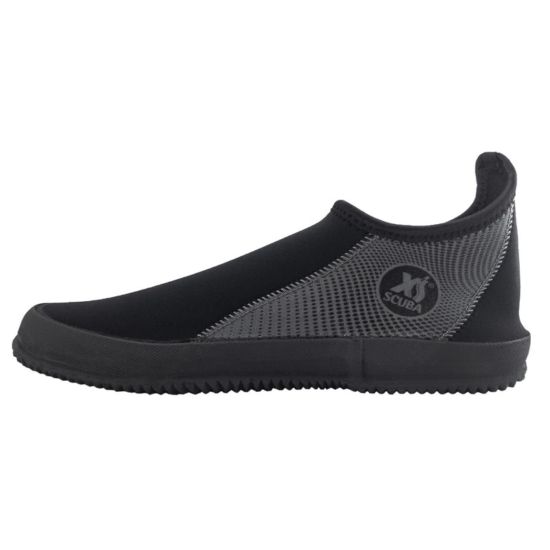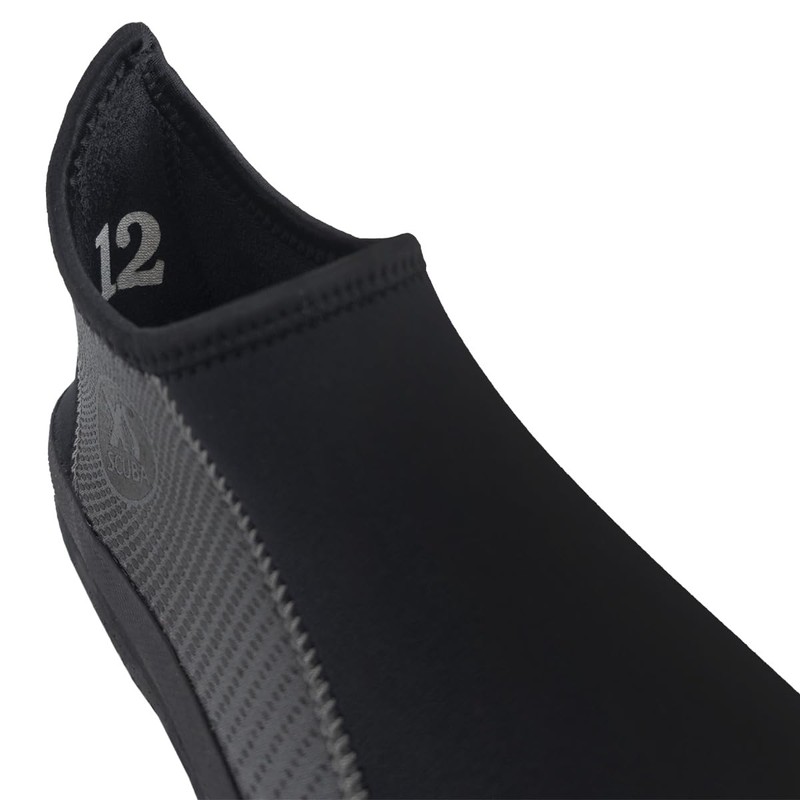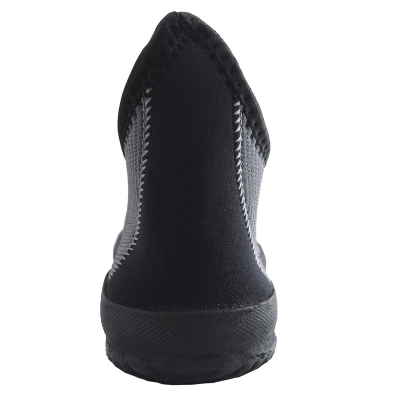 Lightweight and rugged. Extended heel for fin strap protection. Aggressive “SureGrip” vulcanized rubber sole. Soft nylon lining. Glued and double blind stitched.