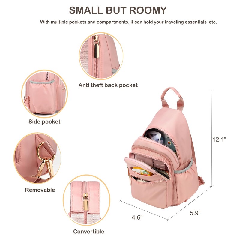 Xsecnua Small Sling Bag for Women, Mini Backpack Sling Backpack Convertible, Small Backpack Crossbody Bags for Travel Daypack Hiking