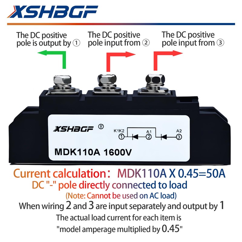 - ☆☆☆This model is anti-reverse diode MDK 110A-16.Also called blocking diode. Peak voltage 1600V.Use voltage range: AC < 400VAC, DC 3-1000VDC,include:12VDC 24VDC.