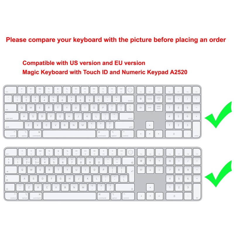 - XSKN silicone keyboard skin compatible with both of EU version and US version Apple 2021 Released iMac M1 Magic Keyboard with Touch ID and Numeric Keypad, NOT OTHER MODELS
