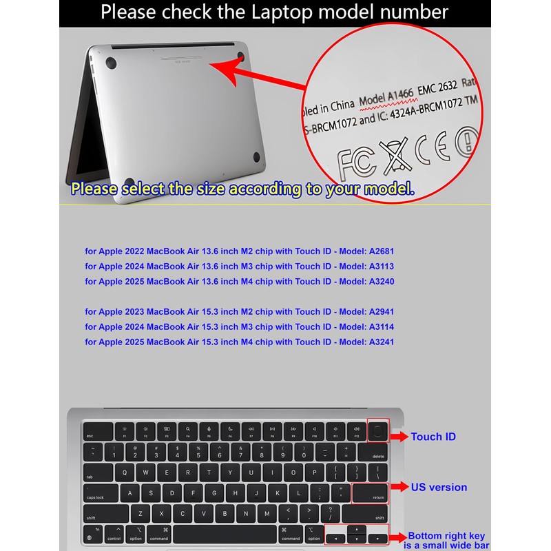 - Fits for Apple 2022 2024 2025 released Macbook Air 13.6 inch with M2 M3 M4 Chip and touch ID, model: A2681 A3113 A3240