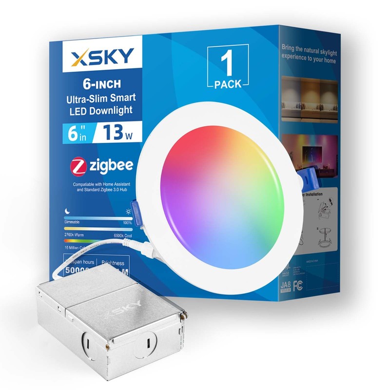 Xsky Smart Recessed Lighting 6 inch 1 Pack,Dimmer Switch Include, Zigbee 3.0 Light, RGBW Dimmable, Downlight, Compatible with Alexa, Home Assistant, SmartThings,16 Million Colors